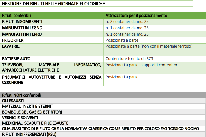 Si allega l'elenco dei materiali che vengono ritirati e di quelli che non vengono ritirati da SCS Spa.