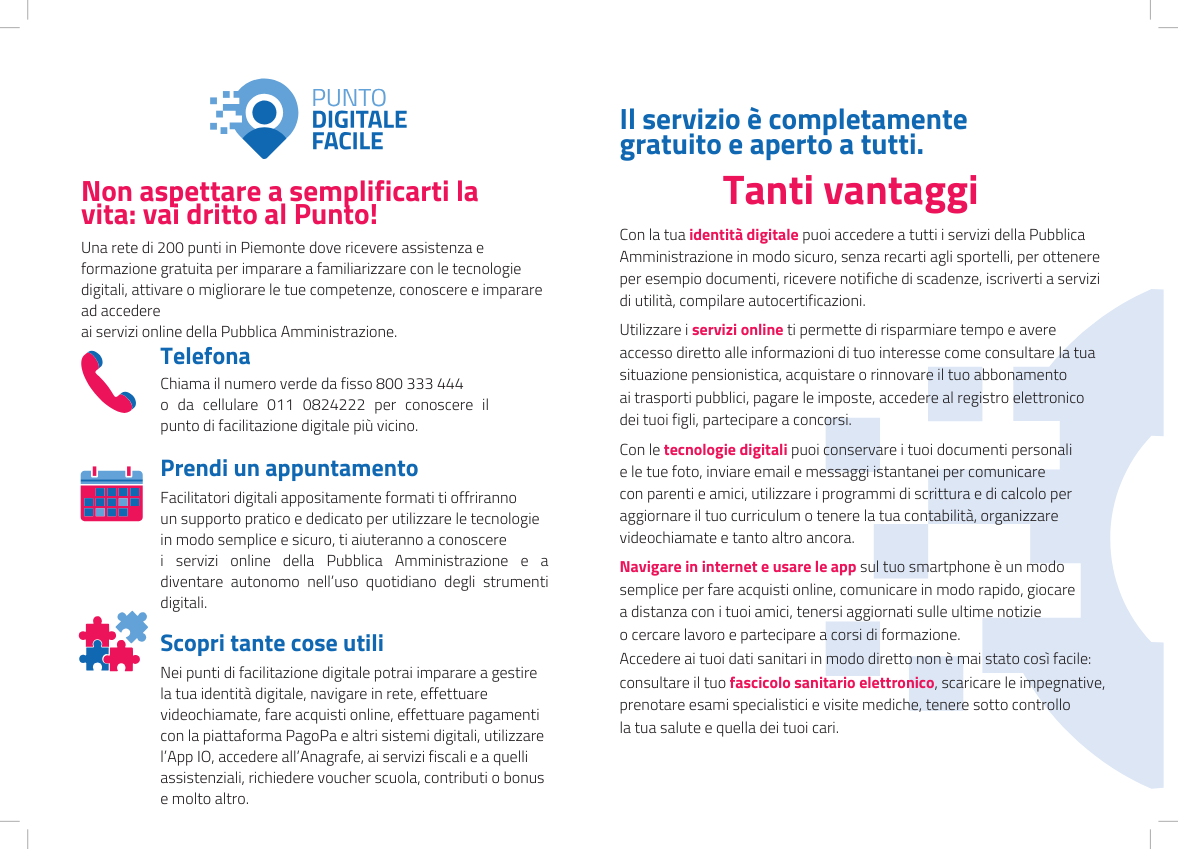 Il servizio è stato attivato grazie alla partecipazione del Consorzio IN.RE.TE., in qualità di soggetto sub-attuatore, al bando della Regione Piemonte: "Bando regionale non competitivo per l'attuazione della Misura 1.7.2. del PNRR: costituzione di reti locali di facilitazione digitale" finanziato dal Ministero per la Transizione Digitale nell'ambito della "MISURA 1.7.2 del PNRR per la Transizione Digitale".