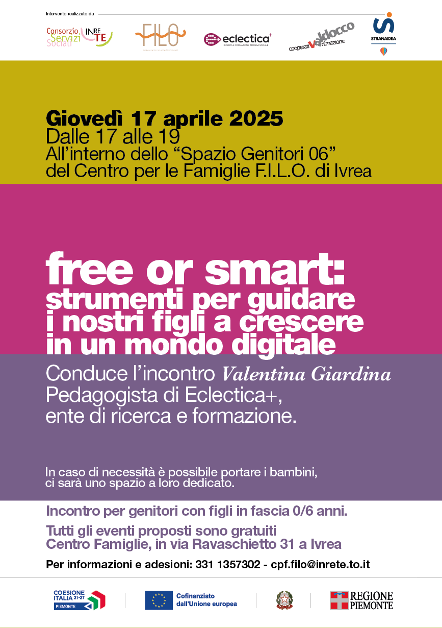 Tali incontri si realizzano grazie alla progettualità "Promozione della genitorialità positiva", realizzata all'interno del Programma Regionale (PR) Fondo Sociale Europeo Plus (FSE+) 2021-2027 della Regione Piemonte.