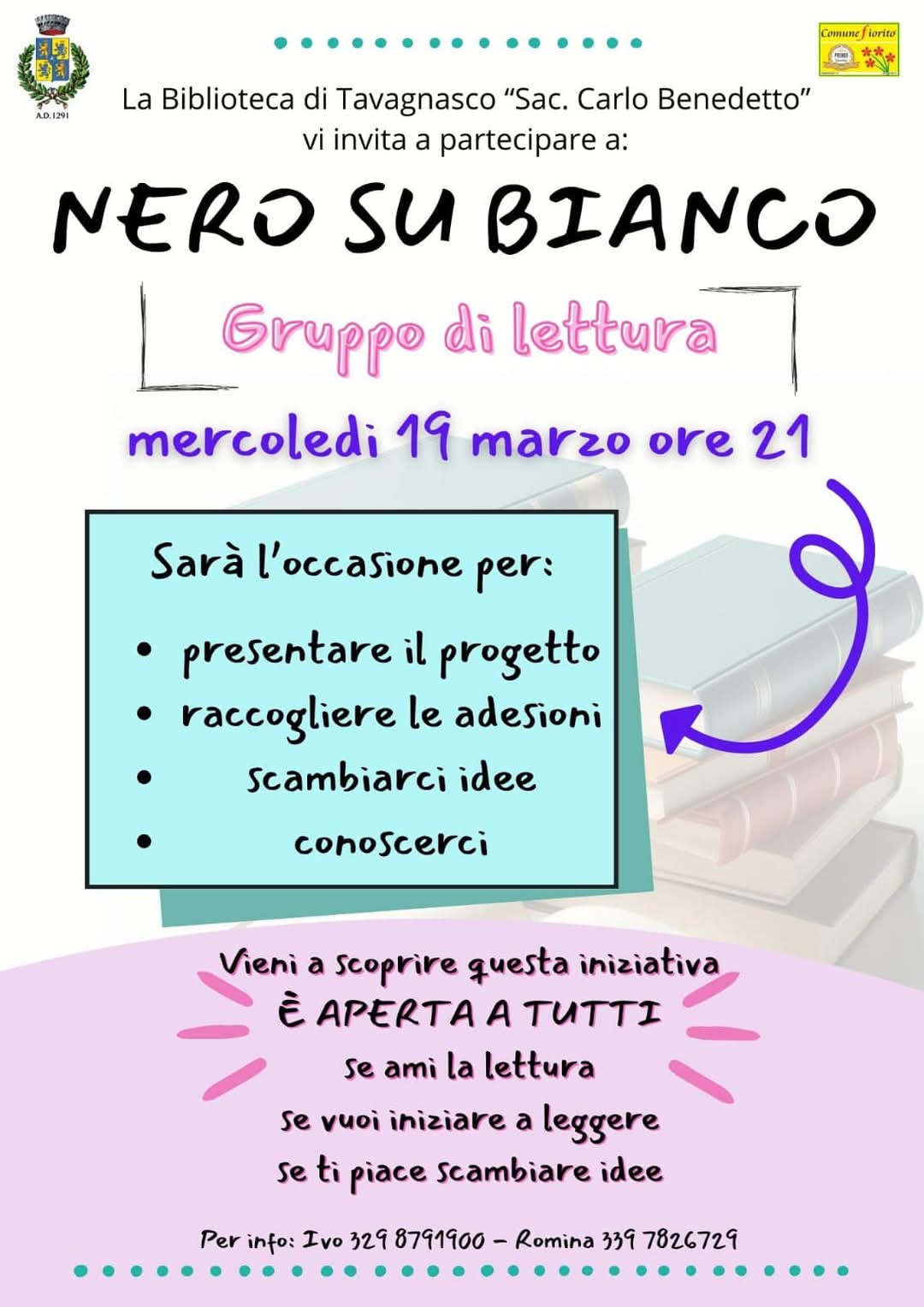Vi aspettiamo Mercoledì 19 marzo 2025 alle ore 21 in Biblioteca per il PROGETTO "Nero su Bianco" - Gruppo di Lettura