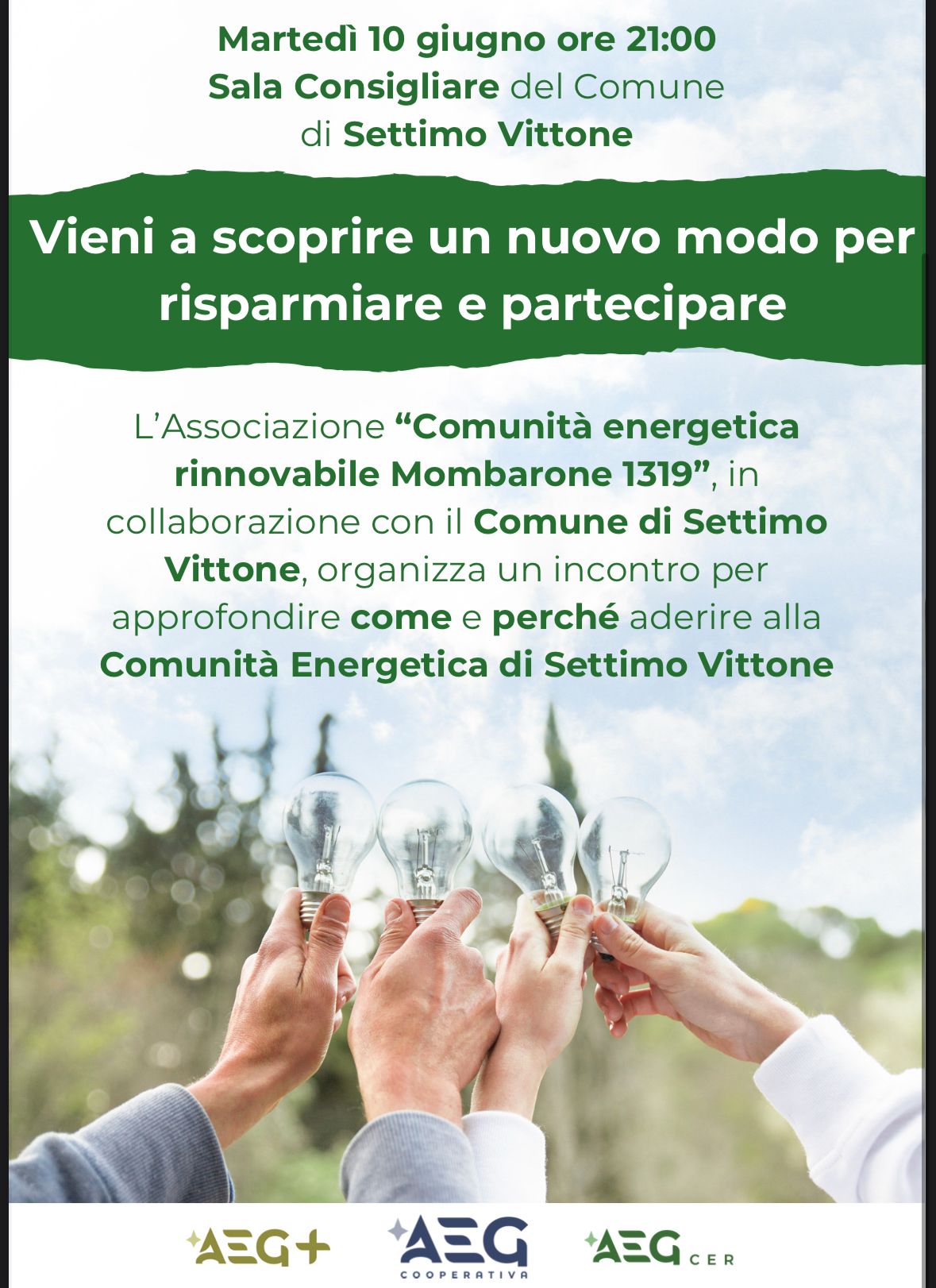 L'Associazione "Comunità Energetica RInnovabile Mombarone 1319", in collaborazione con il Comune di Settimo Vittone, organizza un incontro per approfondire come e perchè aderire alla Comunità Energetica di Settimo Vittone.